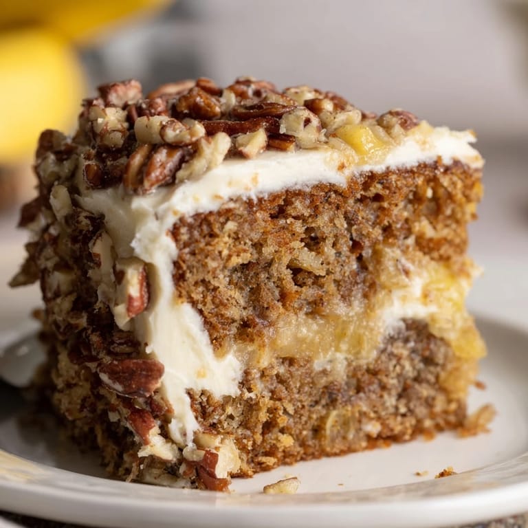 Save My grandmother pulled this cake out of her oven every Easter weekend without fail, and the kitchen would fill with this smell of warm cinnamon and tropical fruit that made everyone stop what they were doing. I watched her frost it maybe a hundred times before I finally asked if I could try, and she just smiled and handed me the spatula like I'd been ready all along. There's something about how the bananas and pineapple make this cake stay impossibly moist for days that felt like magic when I was young. Now I understand it's just good ingredients working together the way they're supposed to, but it still tastes like memory.