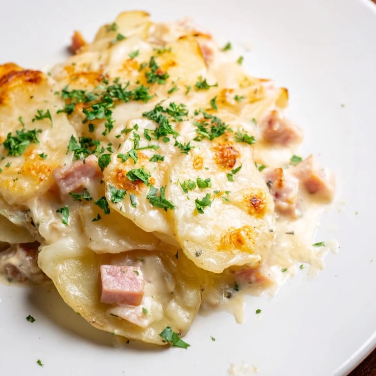 Save There's something about the smell of potatoes and cheese baking together that makes a kitchen feel like home. I discovered this version of scalloped potatoes years ago when my neighbor brought it to a winter potluck, and one bite made me understand why it disappeared so quickly. The layers are impossibly creamy, the ham adds this subtle salty richness, and somehow it's comforting without feeling heavy. I went home that night determined to figure out her secret, and after a few attempts and one memorable batch where I forgot the nutmeg entirely, I finally got it right. Now it's become my go-to for feeding a crowd.