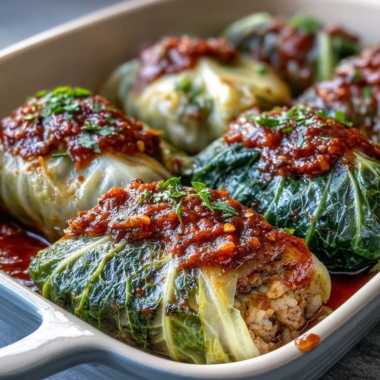 Save My grandmother used to boil a whole cabbage in her biggest pot, steam rising like a fog, and I'd watch her peel off those leaves one by one with a fork, barely flinching at the heat. She never measured the filling, just worked by feel, her hands moving in a rhythm she'd known since childhood. The smell of tomato and thyme would fill the whole apartment by mid-afternoon. I didn't appreciate it then, but now I crave that exact scent on cold weekends. It's the kind of dish that asks for your patience and gives back tenfold.
